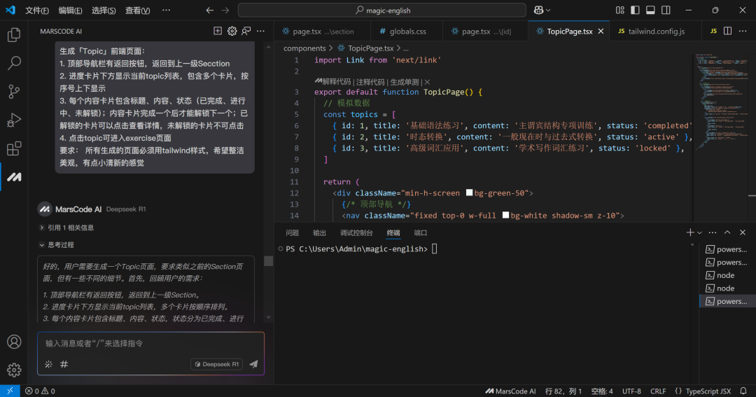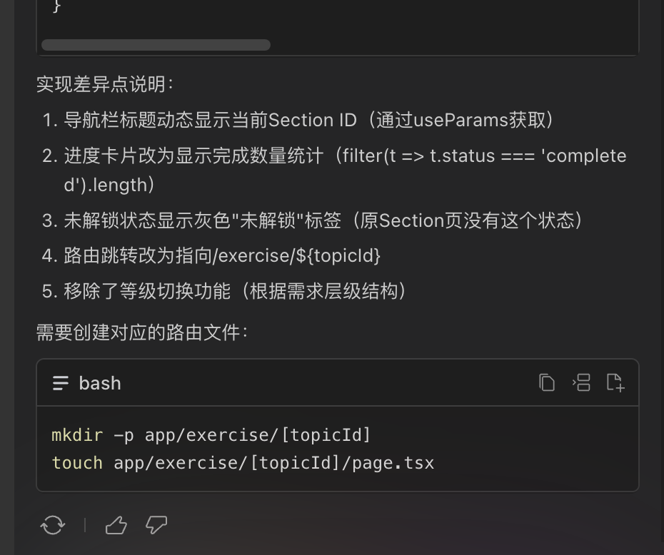 现在继续完善每个section点击后跳转进入的topic页面,我们继续向MarsCode输入以下提示词: