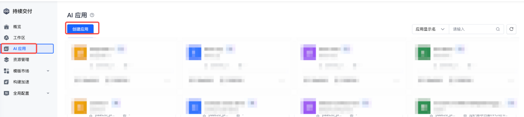 1.基础信息配置:在持续交付 CP 工作台左侧菜单栏选择“AI 应用”(邀测功能,欢迎联系客户经理申请),点击“创建应用”: