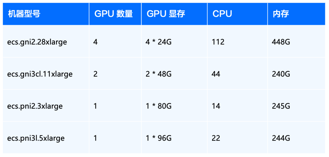 QwQ-32B 参数规模达到 320 亿,需要保证显卡总的显存保持在 80G 或以上,因此用户可以根据实际的情况来选择不同规格的 GPU ECS。不同规格的机器在启动命令配置上会有些许差异,我们推荐 ECS 机器型号如下: