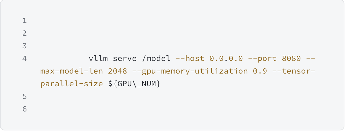vLLM 默认的启动命令如下所示,用户也可以根据实际推理服务的需求,对默认启动命令做修改。
