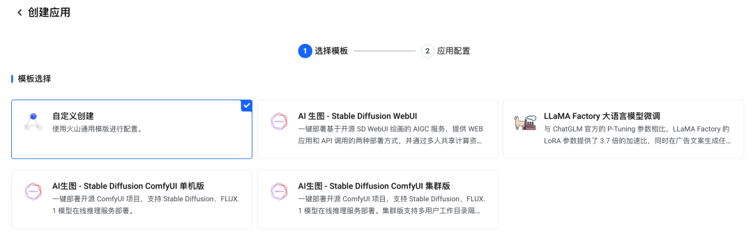 2.在应用创建表单中,选择“自定义创建”: