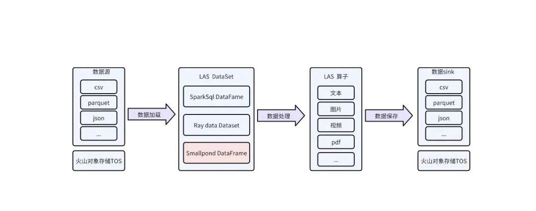根据项目介绍,Smallpond 的目标是解决 AI 场景灵活的数据处理需求,这与火山引擎 LAS 多模数据湖的目标是相同的。LAS 数据湖配套有自己的数据处理框架,以及大量的用于多模数据处理的算子,用户可以开箱使用。而如果用户选择使用类似 Smallpond 的数据处理框架,通过 LAS 也能很好的支持,同时也能很好的发挥云的优势。