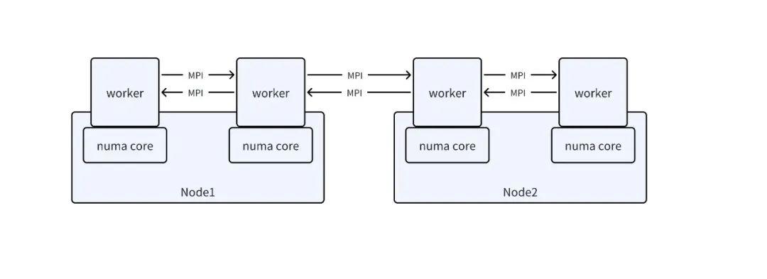 这是一个可能容易被忽视的创新点:借助 MPI 框架,用户可以自定义任务,使用 MPI 做高效的集合通信。上文已经说到,用户完全可以自定义自己的 Python 脚本,而用户可以在自己的 Python 脚本里写 MPI 程序,从而使用 MPI 做高效的集合通信。