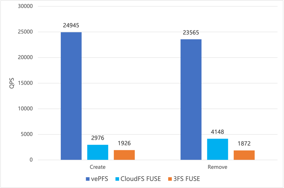 - CloudFS 创建文件性能和 vePFS 相差较大的原因是创建文件整体链路较长,需要通过 Proxy 到 NameNode 再做高可用复制;