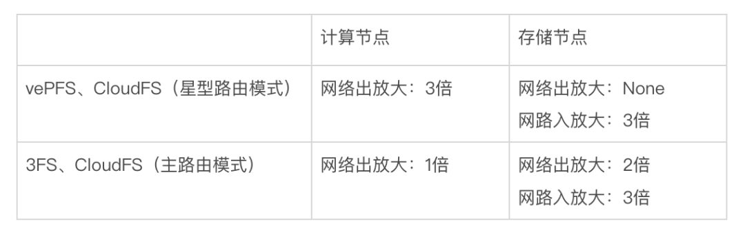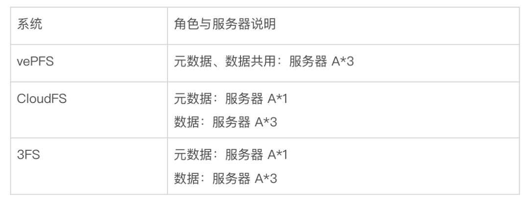 为了更公平地进行对比测试,vePFS 在测试过程中采用和 3FS、CloudFS 一样的三副本配置。火山引擎上默认提供的 vePFS 采用 EC 配置,如果有三副本需求,可以工单联系火山引擎服务支持团队。
