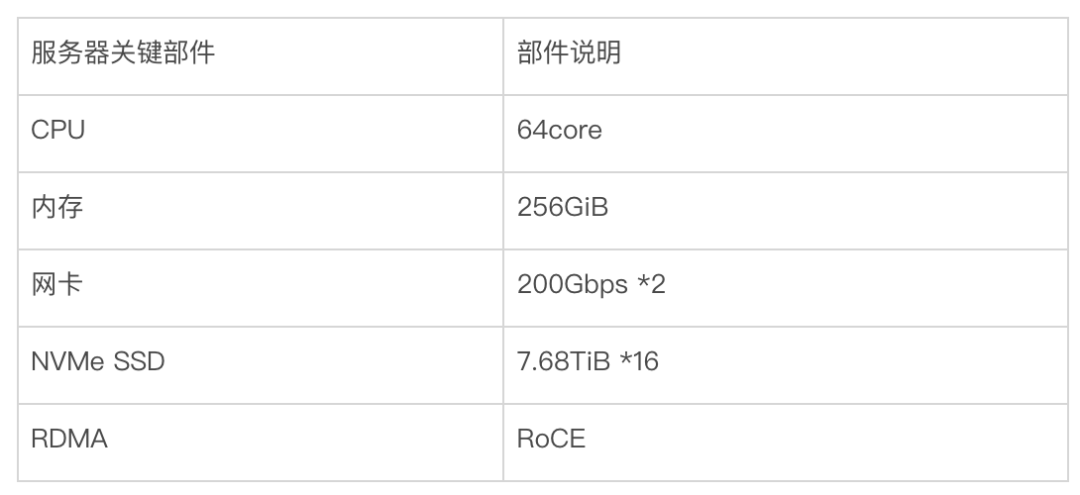 3FS、vePFS、CloudFS 的服务端在部署时均采用以下服务器配置(以下简称服务器 A):
