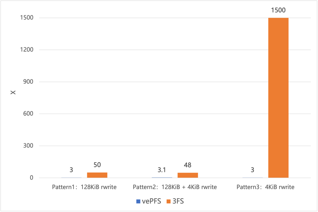 因为 CloudFS 当前不支持覆盖写,此场景只包括 vePFS 和 3FS 测试。