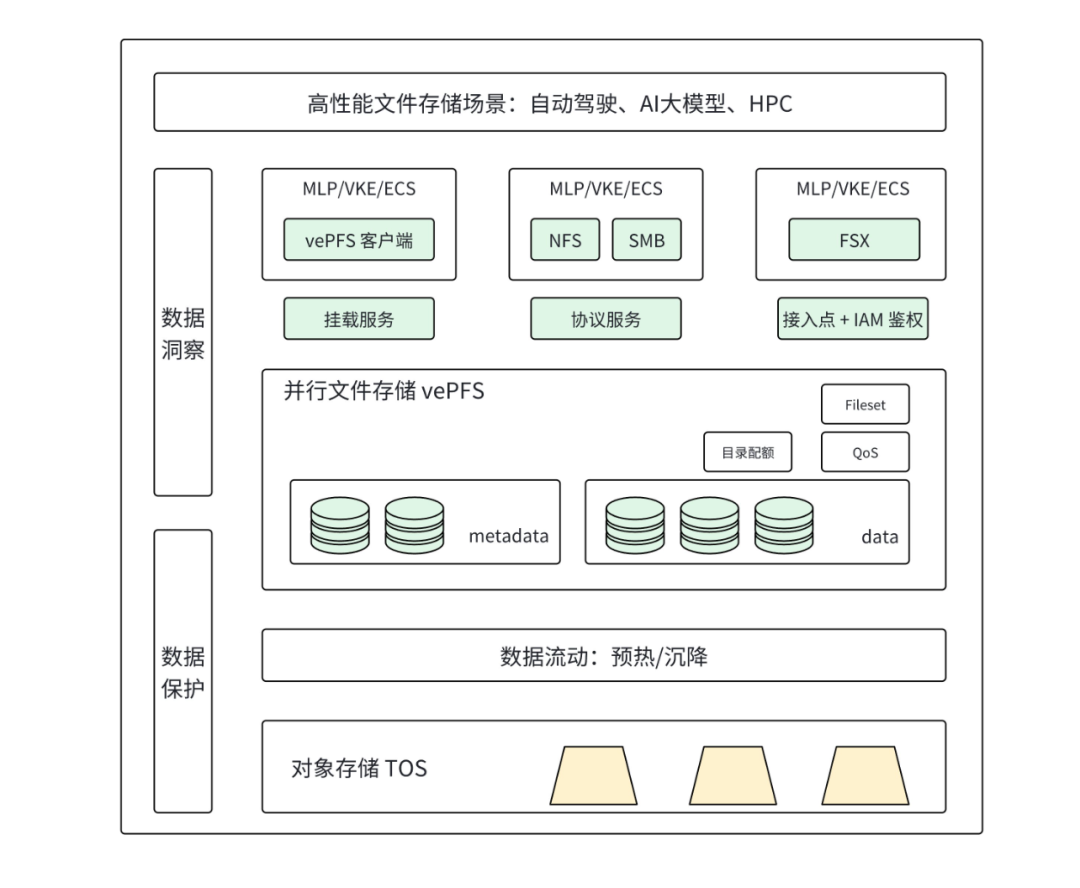我们长期思考并致力于解决这些问题,形成的答案正在逐步落地到我们的产品中,并形成一个完备的火山引擎 AI Cloud Native 文件产品体系: