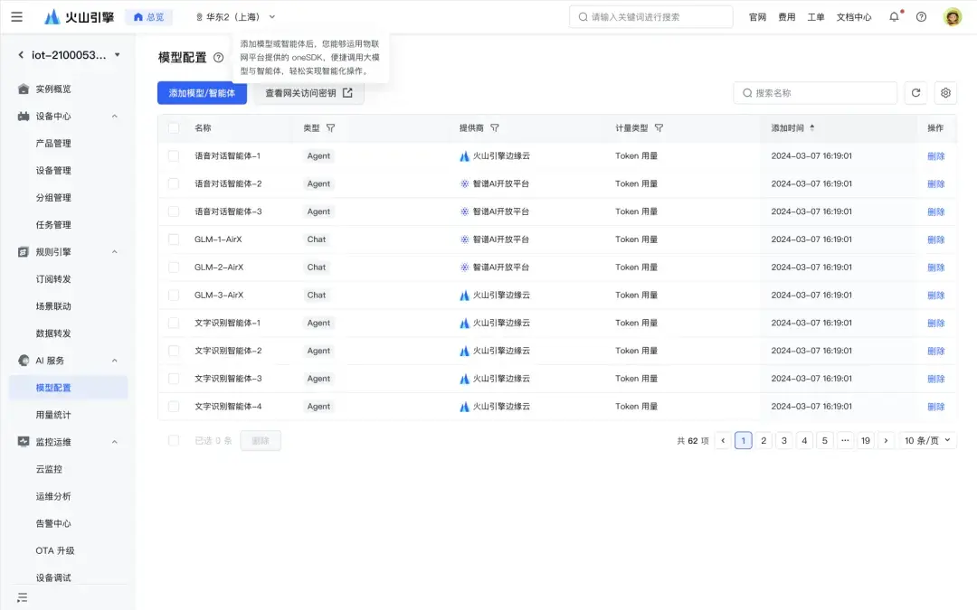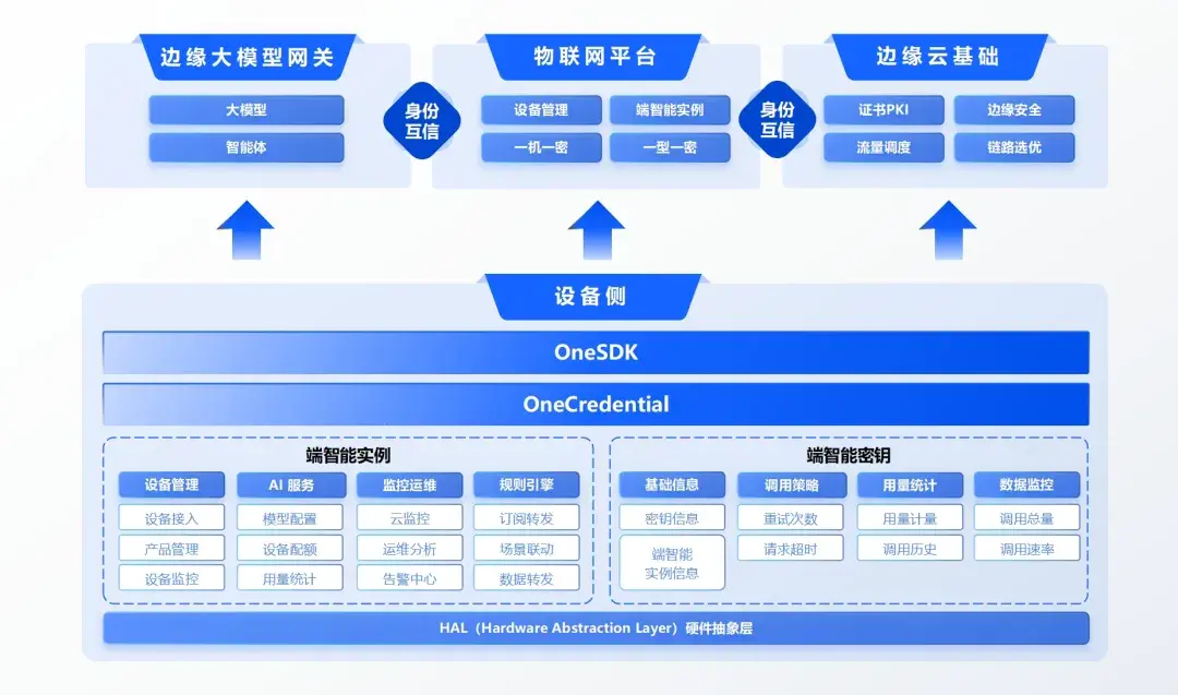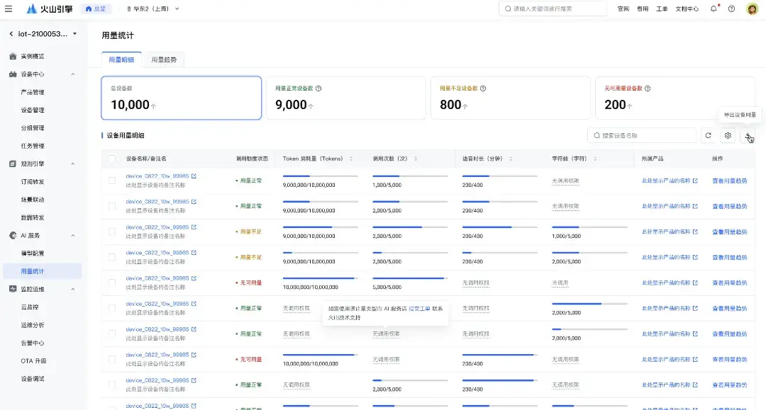 想要解决这些问题,我们需要在硬件设备和大模型之间搭建一座桥梁。今天,火山引擎边缘大模型网关打通智能设备管理平台,全面推出 端智能实例 。用户通过端智能实例提供的 OneSDK ,就可以完成设备接入、AI 服务调用、设备用量统计以及制定智能服务调用策略等,实现对智能硬件的全流程管理。