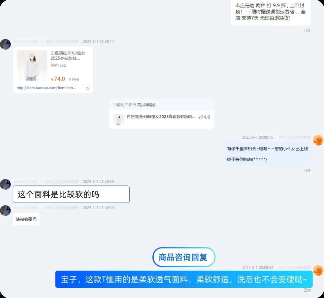 2.精准智能应答 :基于商品属性、历史对话等多维数据,精准识别用户意图,提供准确回复;