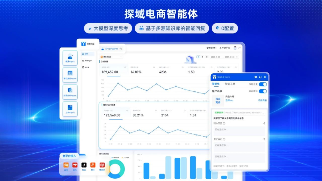 除了抖音电商团队,不少企业也基于扣子搭建自己的 Agent 客服系统。例如,探域科技就基于扣子平台定制化了自身的电商智能体解决方案。快速定位知识库中的商品特性、活动信息、历史对话等,生成个性化话术增加商品吸引力和促转化。在多轮对话中,客服 Agent 也能结合店铺邮费/运费险/优惠券话术策略,打消消费者疑虑,建立信任并促进决策。