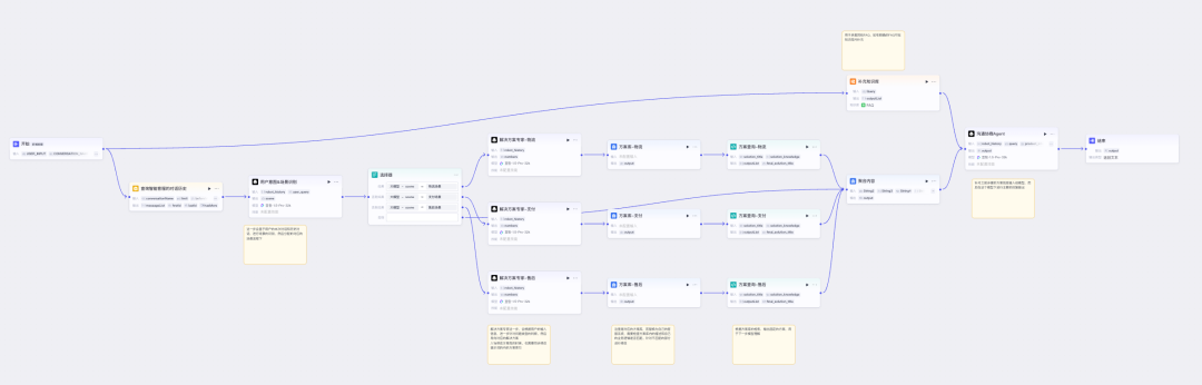 2.Agent 节点 :承接独立职能,如寒暄&收尾、问题澄清、场景路由、判断解决方案、协商&执行方案等;
