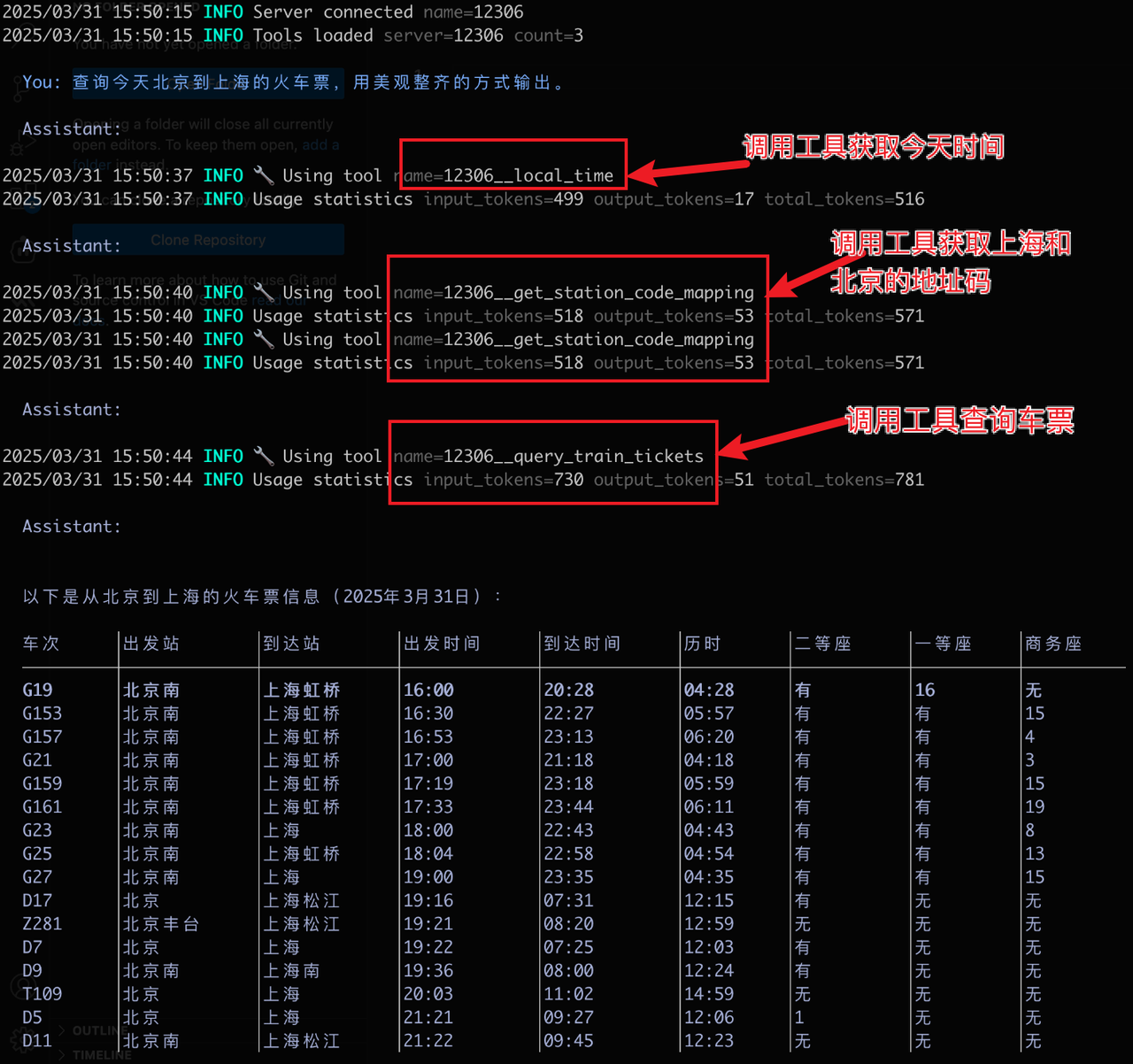 # 在 query_train_tickets 函数中调用优化函数@mcp.tool()async def query_train_tickets(train_date: str, from_station: str, to_station: str, purpose_codes: str) -> Any:"""