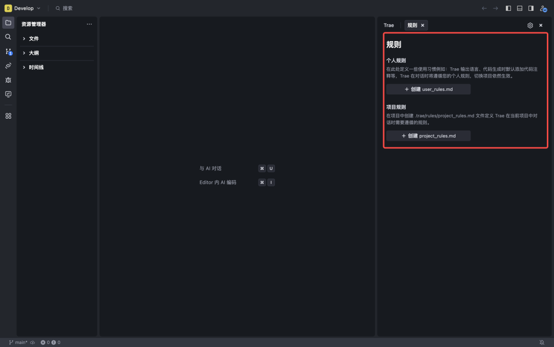 3.在 user_rules.md 文件中输入 AI 需要遵守的规则。