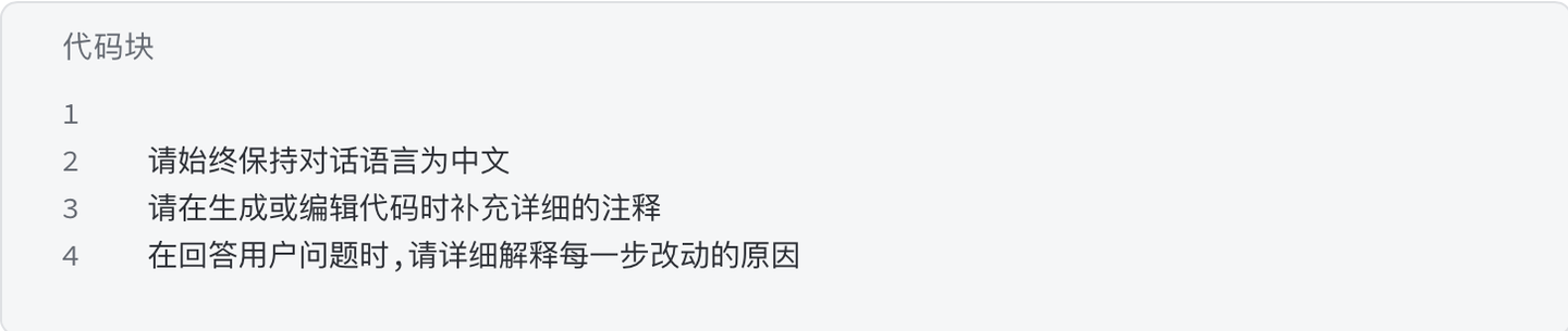 Rules 基于一个很常见的场景:当你频繁使用 AI 时,可能会遇到反复输入同类指令的麻烦 —— 比如每次都要强调语言风格、框架约束、注释格式、安全合规等要求。而 Rules 功能为 AI 提前设定了行为规范,让 AI 每次响应时自动 “读取” 这些预设规则,无需重复提醒也能输出符合预期的内容。同时,不同开发场景时,对应的 Rules 可以让 AI 精准适配当前任务的技术要求,大幅提升开发效率。