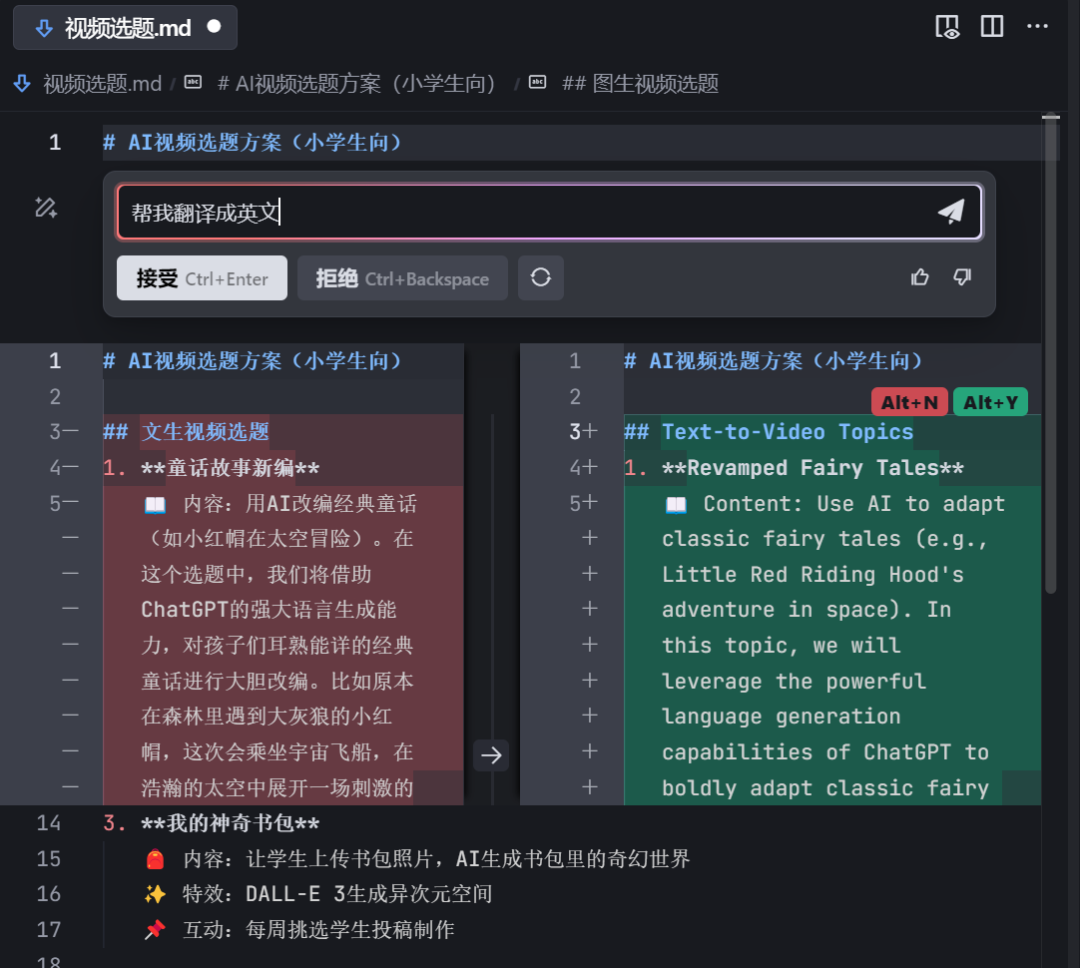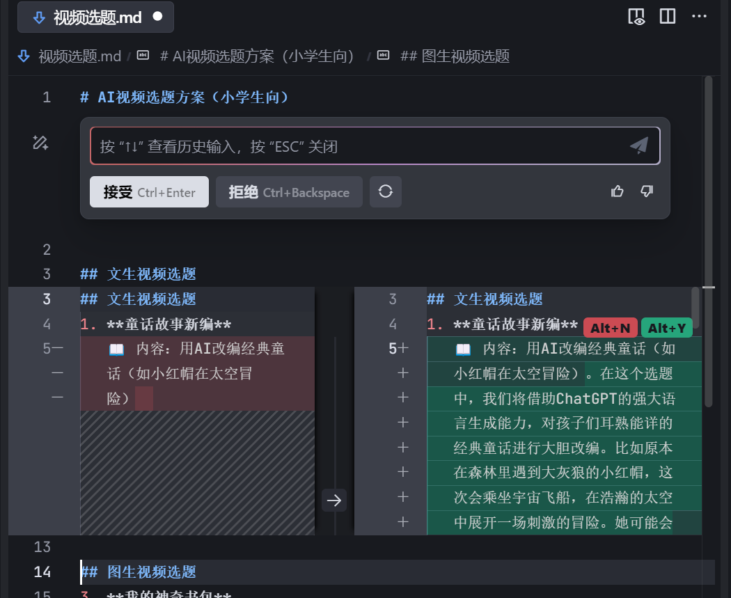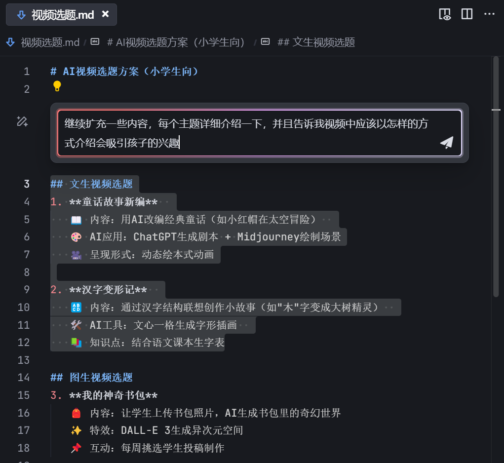 - 当我们需要聊天的时候,直接在对话框自由AI 对话就可以(相当于原 Chat 模式):