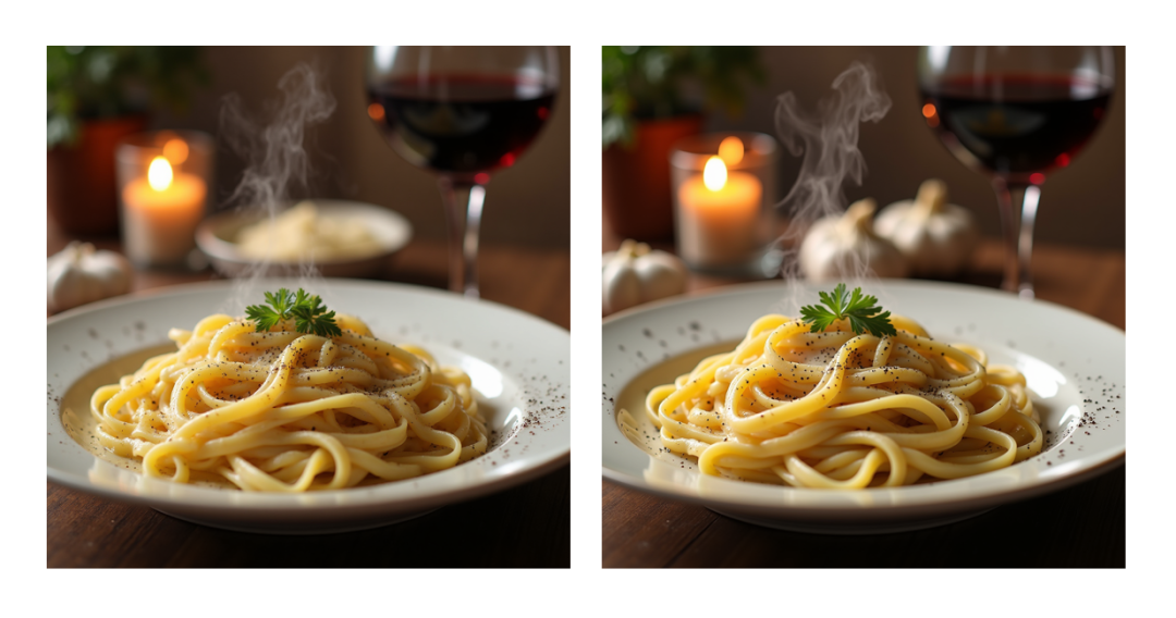 - Prompt: A steaming plate of fettuccine Alfredo