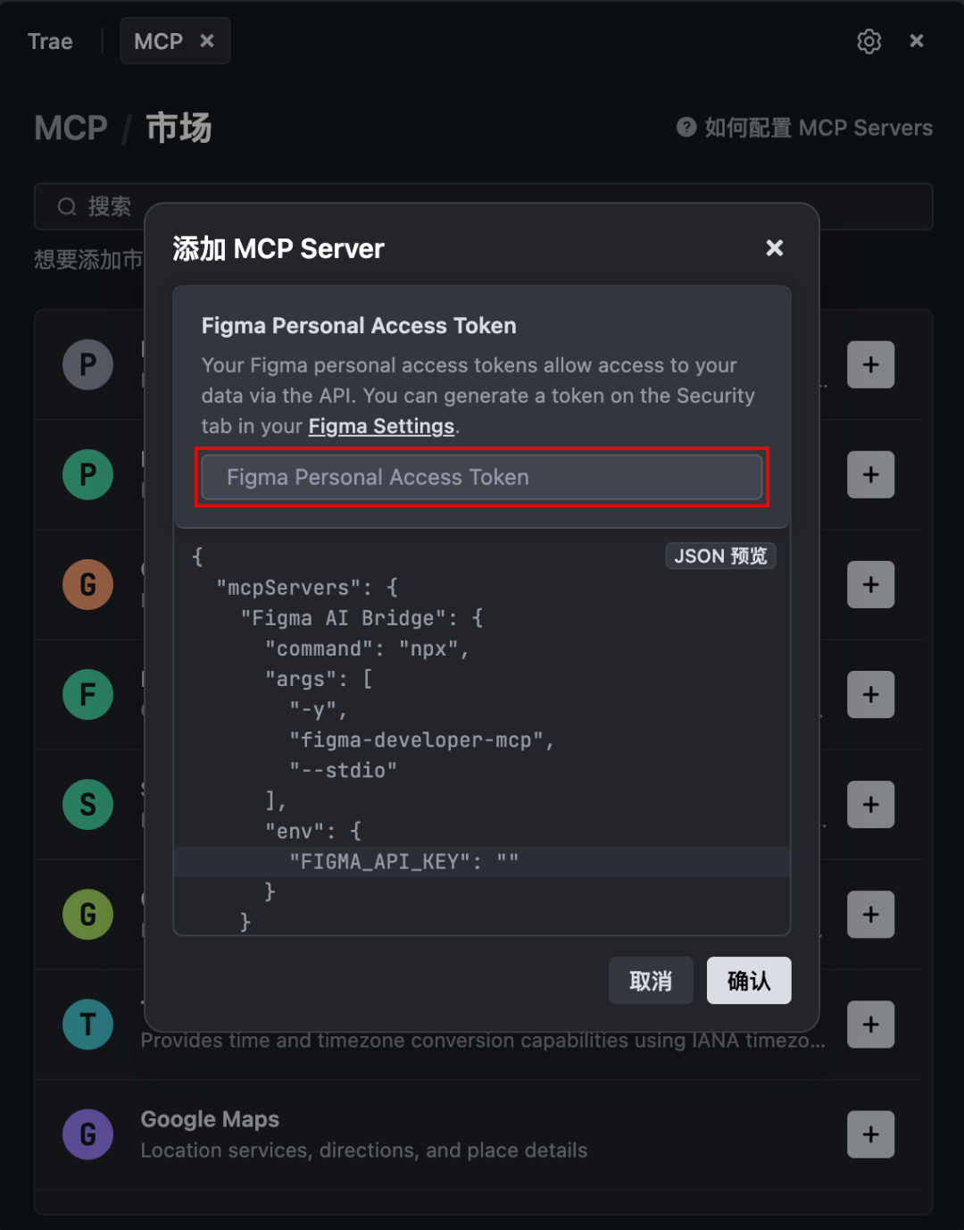 Figma Personal Access Token 已生成,你会在后续配置 MCP Server - Figma AI Bridge 时用到它。