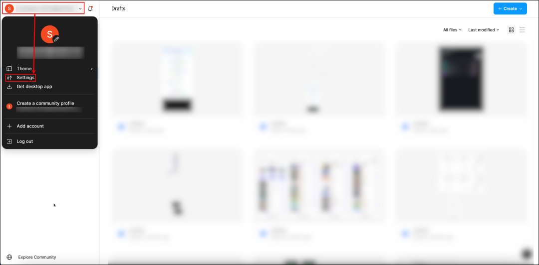 2.点击页面左上角的用户头像,然后在菜单中选择 Settings。