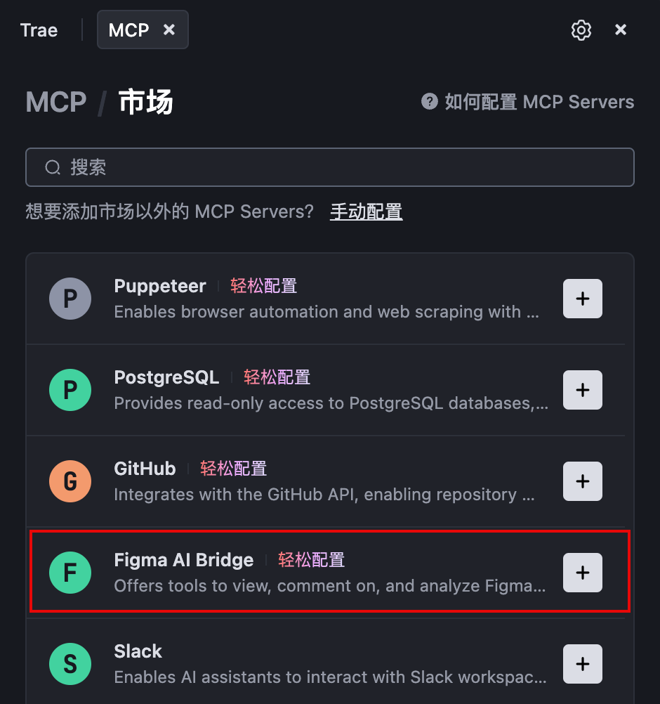 4.找到 Figma AI Bridge,然后点击右侧的 + 按钮。