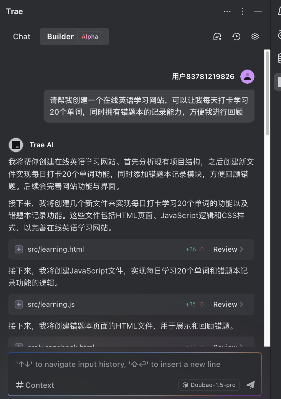 输入「帮我搭建一个英语学习网站」,见证 AI 如何拆解任务、生成代码,全程无需手动操作!