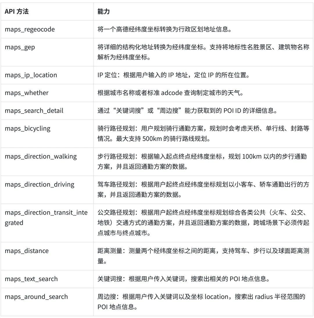 你可以根据文末“参考信息:高德地图 MCP Server 支持的能力” 来设计需求。