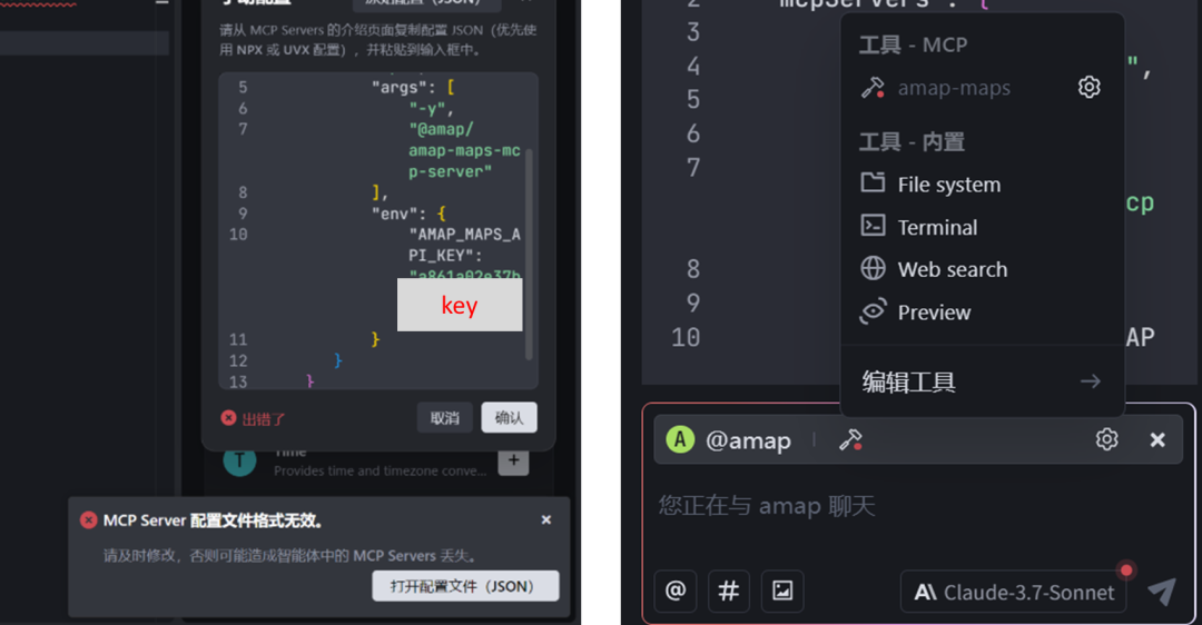 小贴士:这段代码就像是在告诉 AI :"嘿,这是高德地图的钥匙(key),你可以用它来开启高德地图的功能!"