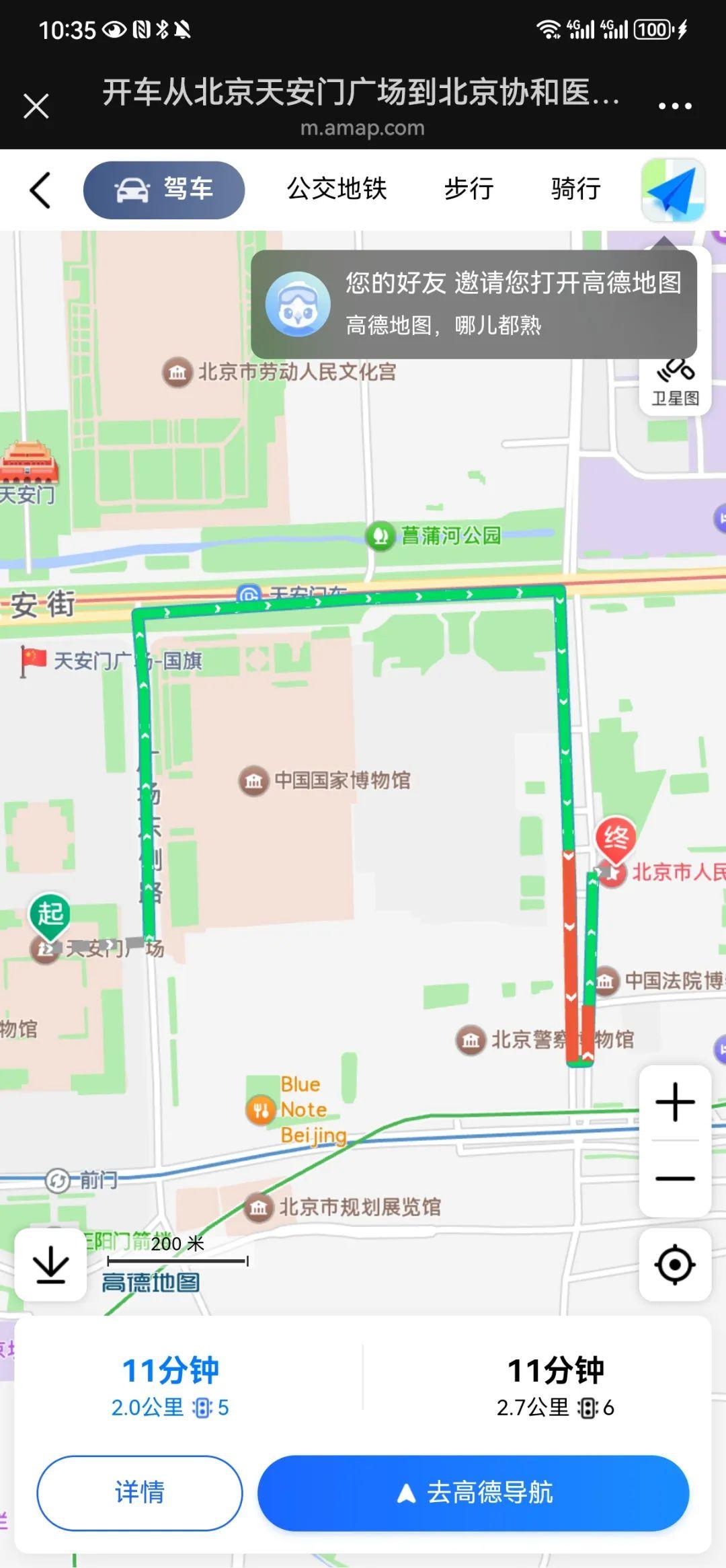 4.点击“打车前往”,可以跳转到高德打车的界面,可选走路和打车、公交,地理位置信息正确,说明 MCP 调取正确!