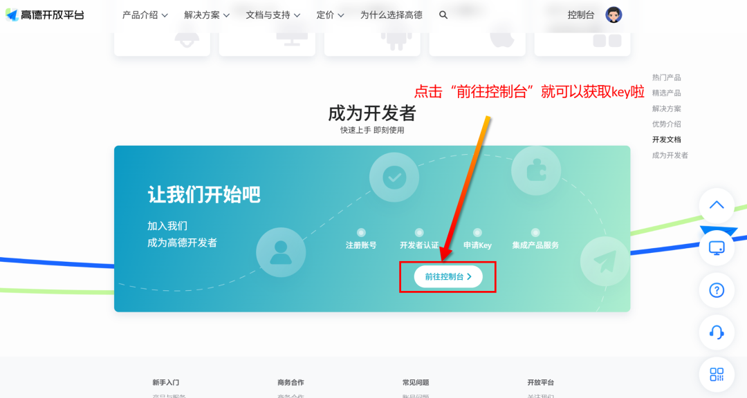 1. 打开高德开放平台官网:https://lbs.amap.com/