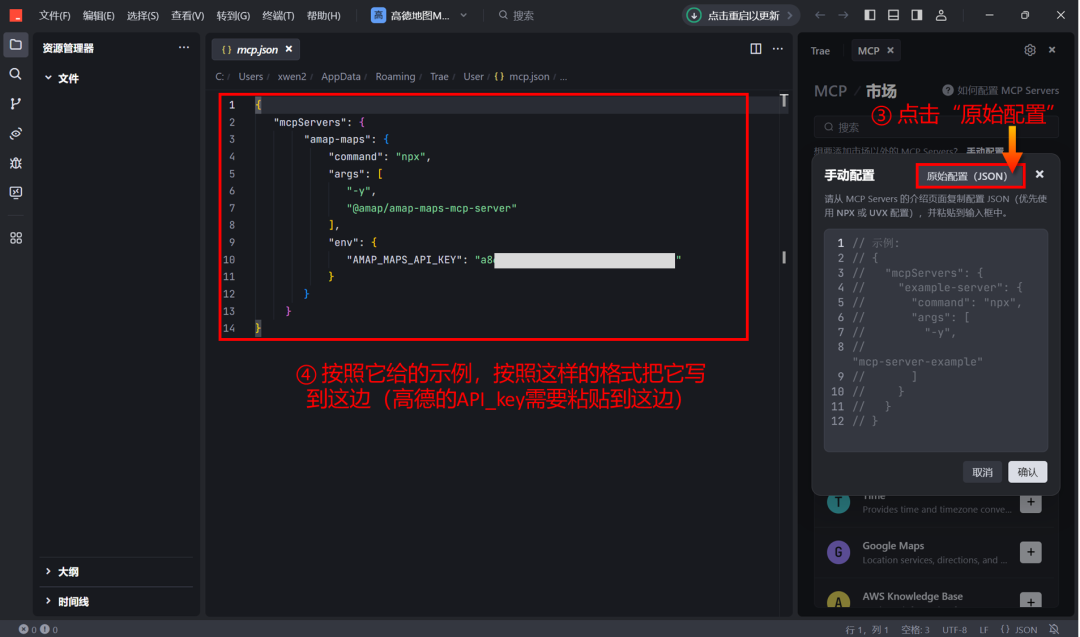 现在,我们需要告诉 Trae 如何使用这个“通行证”: