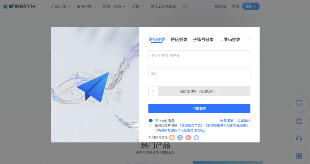 2.最好选择支付宝登录或者高德 APP 扫码登录,后续会二次验证授权。