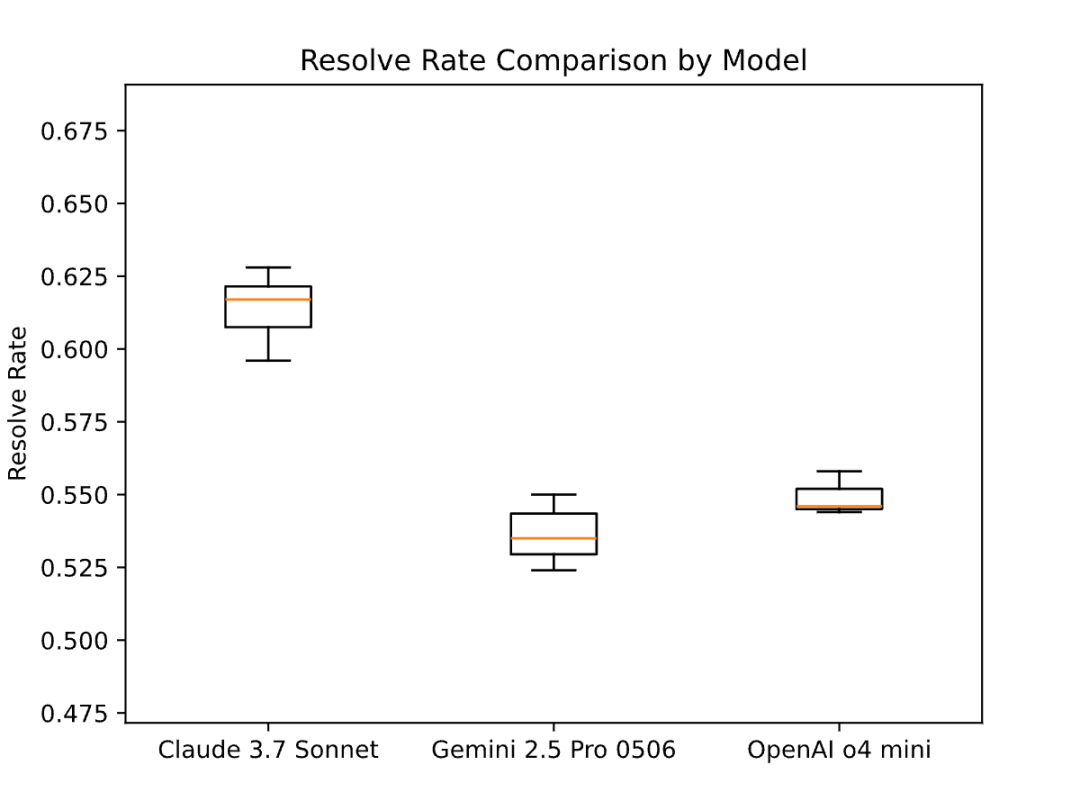 - Claude 3.7 Sonnet 的求解率在 60.6% 到 62.6% 之间