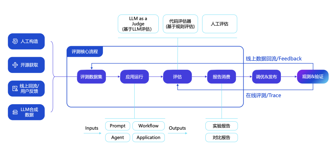 效果评测: 开发完成后,要通过评测来量化 Agent 效果,看 Agent 是否达到一个准出的标准。准出后 Agent 发布上线,获得线上流量。