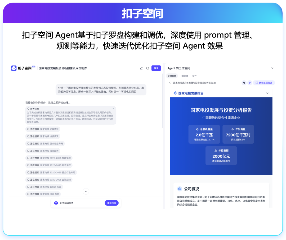 字节的两个大家比较熟悉的 AI 产品扣子空间和 Trae,也都是基于扣子罗盘构建和调优,正是因为有了罗盘的助力,才能让两个产品快速迭代、快速优化。