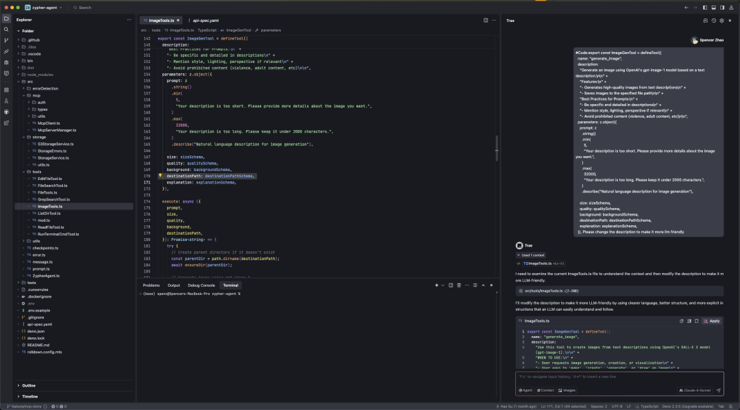 Zypher Agent Framework 本身功能强大,能调用各类工具(支持 MCP、A2A)、管理任务节点(Checkpoint)、并智能检测视觉与代码层错误。但如何高效驱动 Zypher,让它听懂并执行复杂的需求,曾是巨大的挑战。