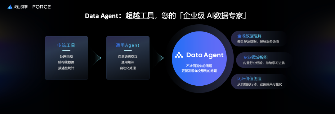 Data Agent这个词儿不是我们最早提出来的,我们发的时候还查了一下,最近一两年有很多讲Data Agent,但是我们是第一个把它定位为企业级数据专家,也就是一个人。