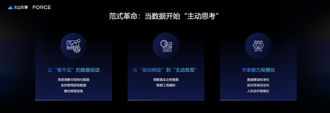 这三点是我们认为应该让数据开始主动思考,以及形成数据智能体的工作方式。