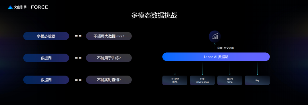 近期在 北京举行的火山引擎FORCE原动力大会上, LanceDB CTO徐磊进行了《LanceDB:AI时代的多模态数据湖》专题分享,展示这一合作如何帮助企业简化AI数据架构,让研究人员专注于模型创新而非底层工程。