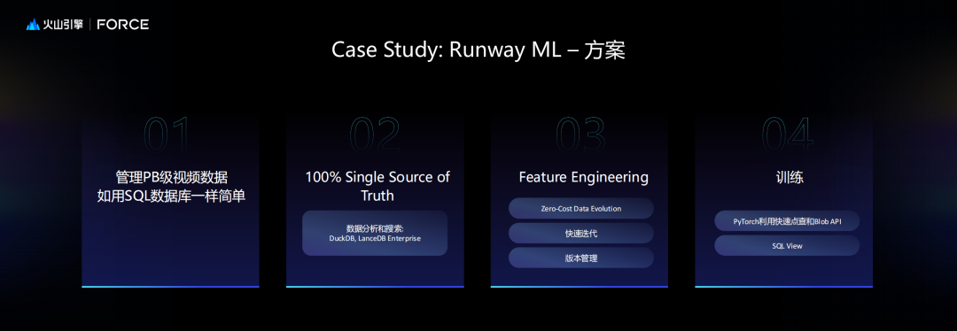 在与LanceDB合作后,Runway ML将数十PB的视频训练数据迁移至Lance格式,通过支持SQL查询和简洁的Python DataFrame API访问和分析海量数据。