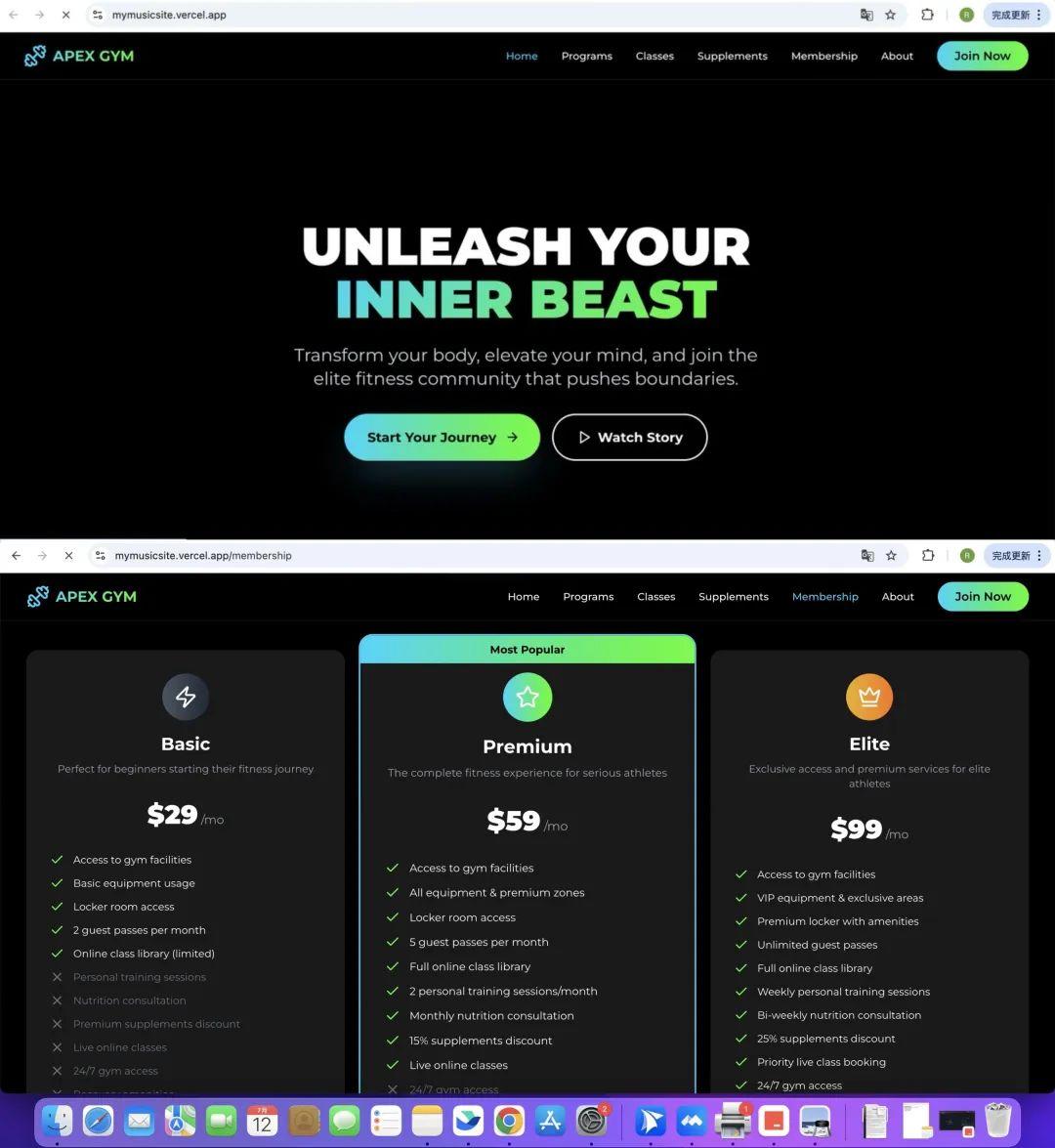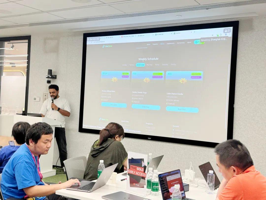 上海会场的产品经理 Sunny 运用 SOLO 模式开发了一个健身网站。除了核心的健身板块外,还添加了健身课程计划与会员制度、商城系统等功能,构建出完备的网站功能。极简的 UI 界面设计,高对比度的主题色,都由 SOLO 自动生成。