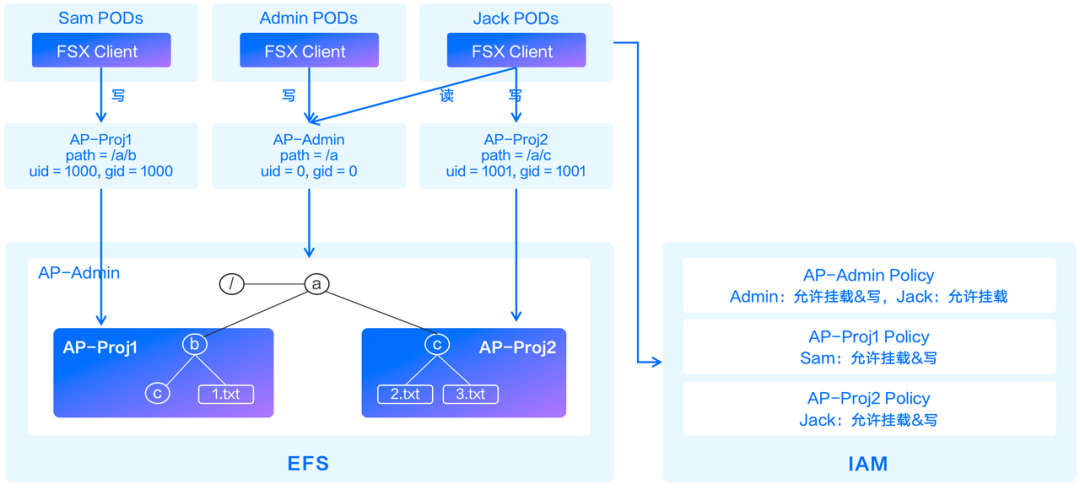 - 细粒度权限:FSX + EFS 接入点 + IAM 鉴权联动实现了目录级用户权限控制,满足多团队共享存储时的安全隔离需求。