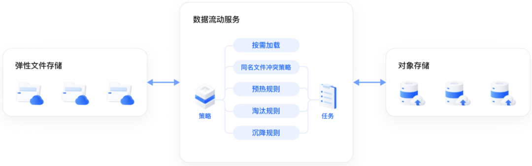 - 按需加载:通过按需加载(lazy load),可从 EFS 透明访问已淘汰至 TOS 的冷数据。当应用尝试访问这些数据时,系统会自动将数据块从 TOS 加载至 EFS,对上层应用完全透明。