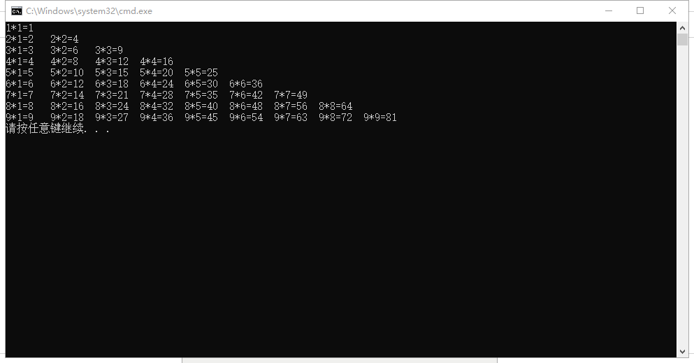 2.输出九九乘法表