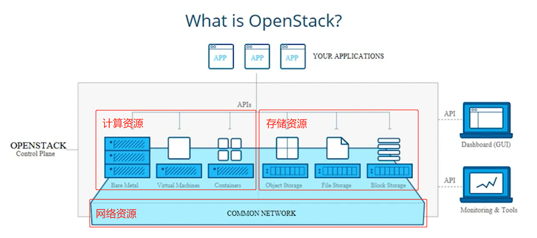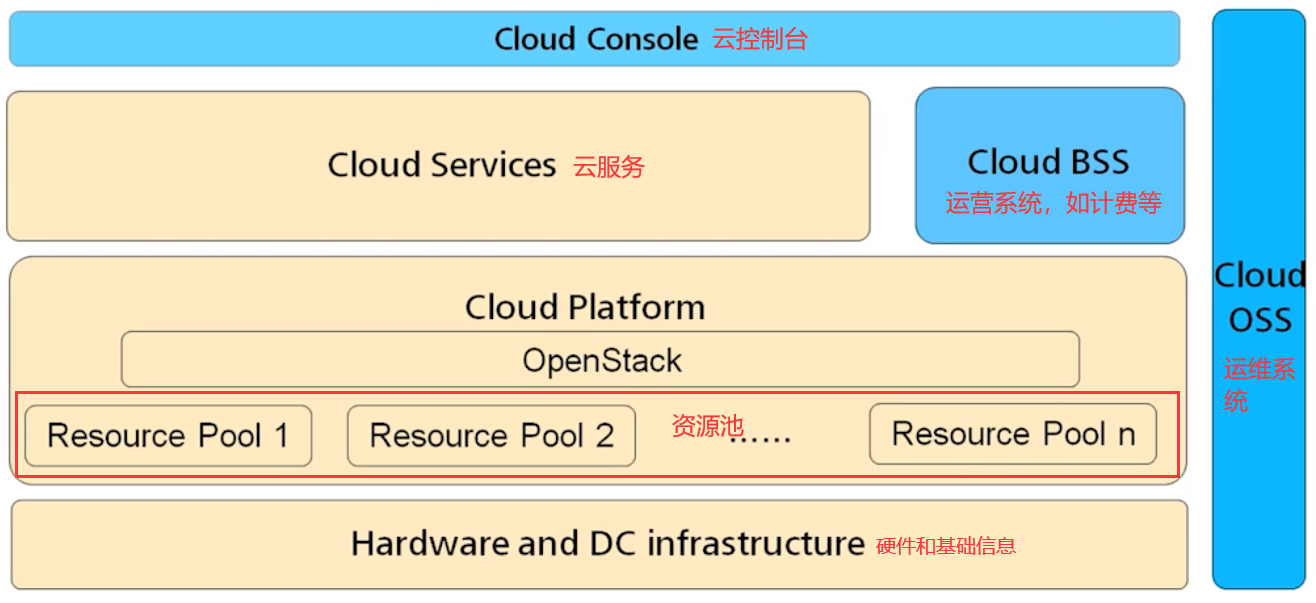 翻译:openstack是一个云操作系统,控制着一个大规模(数据中心级别)的资源池,资源池包含计算、存储和网络。给管理员提供一个仪表盘去控制资源池里所有资源,最终用户可以通过web页面下发(获得)这些资源。