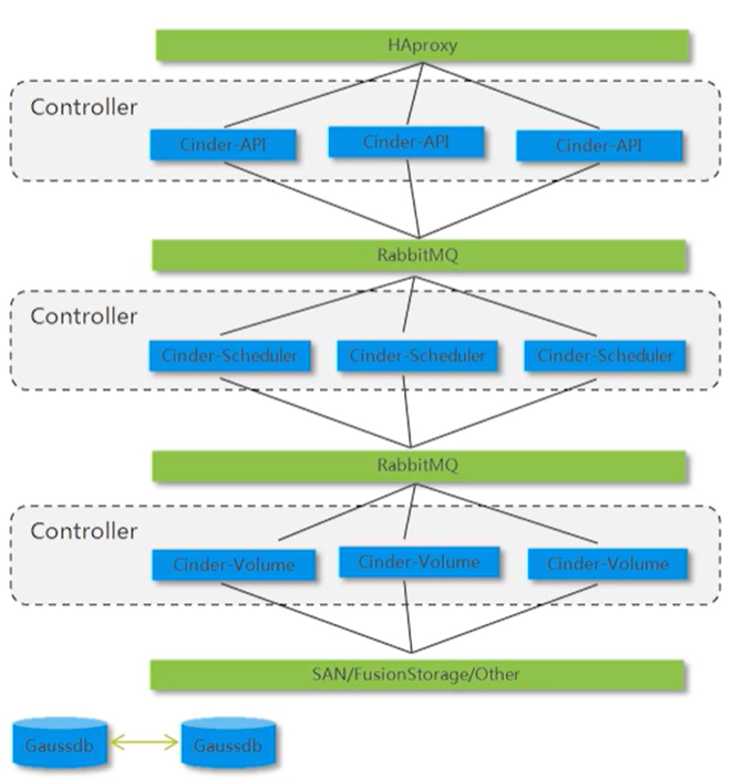 Cinder-Volume部署在管理面,管理后端存储,如SAN、华为FusionStorage等