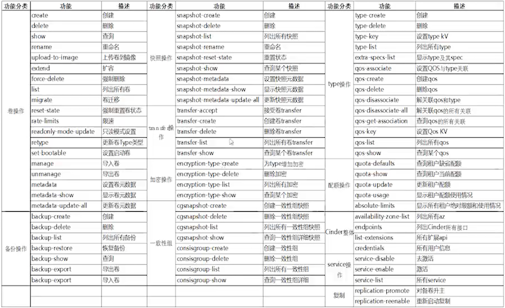 核心功能是对卷的管理,允许对卷、卷的类型、卷的快照、卷备份进行操作。