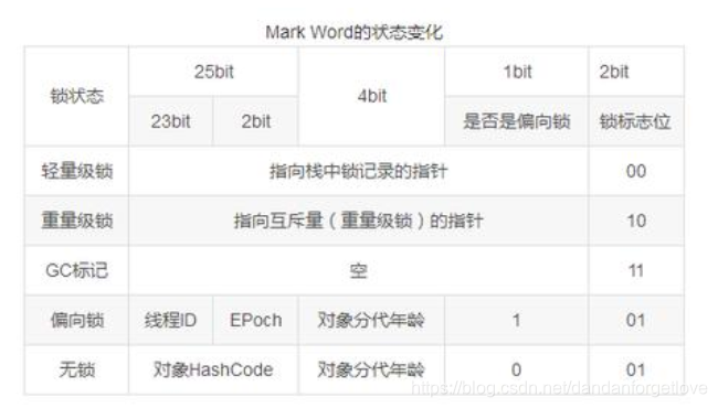 markword 64bit (8byte) : 3位锁标志, 4位分代年龄(GC标记,被回收了多少次), 25 位hashcode(没有重写过hashcode方法,默认使用的identityHashcode()生成的) 。