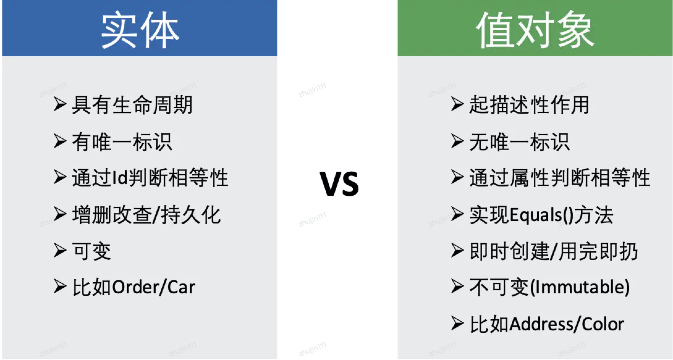 其实这两点要简化为具有唯一标识和生命周期。唯一标识可以进一步理解为业务编号,比如订单实体中的订单号。生命周期则一般可以理解为持久化,实际上生命周期是标识在实体生命周期内体现出连续性。