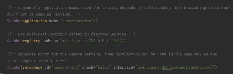 Consumer的使用也很简单,引入Provider的接口包,然后用配置文件生成Provider接口类的代理对象,再交给Spring来管理,这样Consumer的代码中就可以很透明的使用demoService的对象去调用Provider中的DemoServiceImpl的具体函数。接着,解释一下配置文件的含义