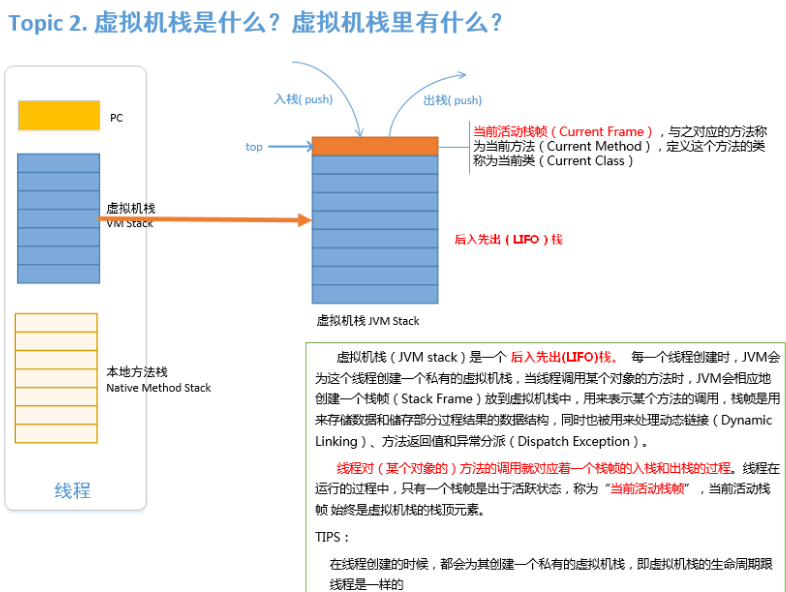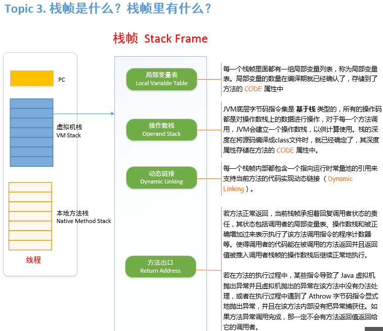 1,这是我们通常所说的“堆和栈”中存放局部变量的栈(和存放对象的堆),但是却不仅仅存放局部变量,存放局部变量的只是里面的变量表部分。